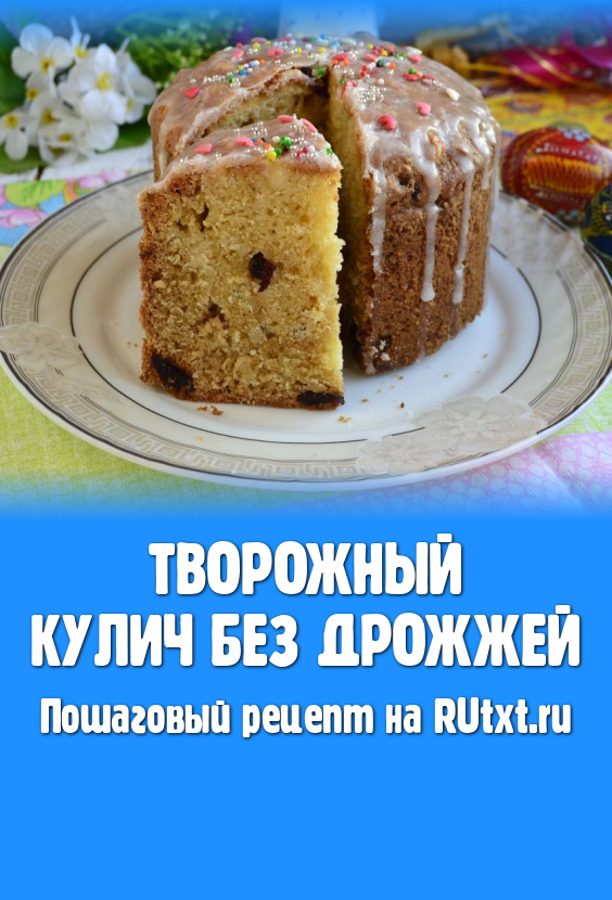 Если у вас не хватает свободного времени на дрожжевые куличи, предлагаю к Светлому празднику Пасхи испечь простой творожный кулич без дрожжей. Такой кулич, конечно, будет отличаться от дрожжевого, но он не менее вкусен и ароматен. Тесто для творожного кулича замешивается быстро и не требует расстойки. Готовый кулич следует выдержать не менее 7-10 часов, чтобы он приобрел нужную структуру и вкус. Глазурь я использовала сахарную, вы можете приготовить любую другую.
