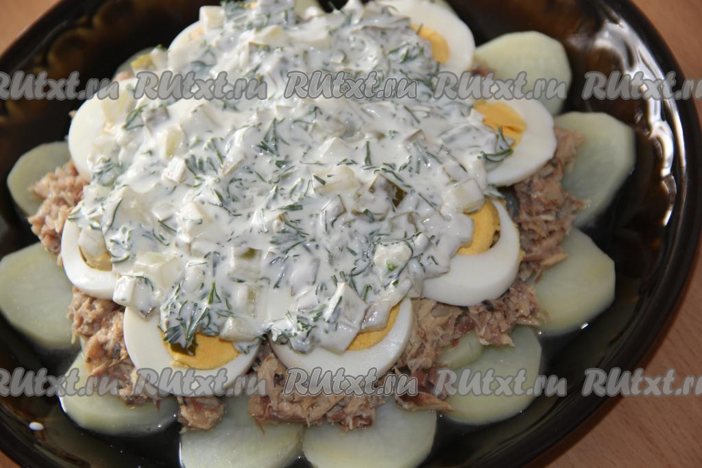 Недавно приготовила очень вкусный слоёный салат из консервированной скумбрии с картофелем и яйцами. Такой салатик можно приготовить и на праздничный стол, и на повседневный ужин. Пикантность салату придаёт заправка из маринованного огурца. Попробуйте приготовить салатик по этому рецепту и, я уверена, он вам понравится.