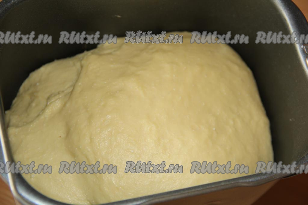 Всыпать муку, дрожжи и соль, выставить режим хлебопечки "Замес теста" (в моей хлебопечке продолжительность режима замеса 1,5 часа). Если замешиваете тесто руками, тогда дрожжи нужно растворить в теплом молоке (температура молока не более 40 градусов) и оставить на 10 минут, чтобы дрожжи "ожили", запенились. Затем соединить дрожжи, сахар, ванильный сахар, яйца, творог, не горячее растопленное сливочное масло и соль, перемешать массу, а затем всыпать муку и замесить нежное, мягкое, приятное в работе тесто. Оставить тесто в миске на 1,5-2 часа.