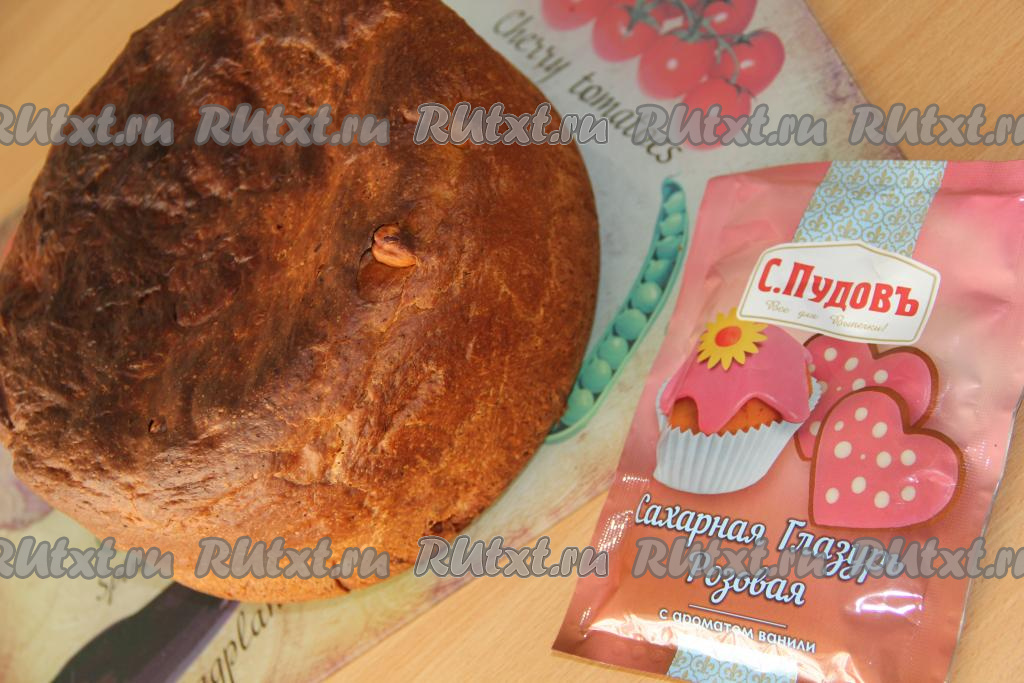 Развести глазурь по инструкции на упаковке и покрыть верх кулича. Украсить кулич по своему вкусу. Вот таким красивым в разрезе получился пасхальный творожный кулич, приготовленный в мультиварке. Очень вкусная выпечка, попробуйте!