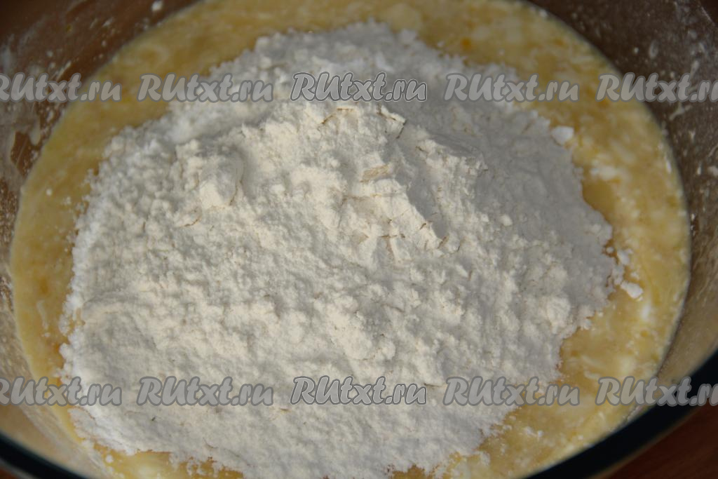 В получившуюся массу всыпать просеянную муку и замесить нежное, мягкое тесто.