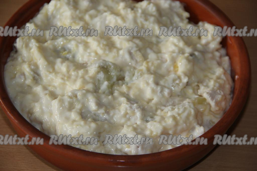 Затем влить, непрерывно перемешивая, небольшими порциями молоко.
