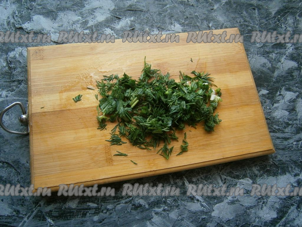 Зелень чеснока и укропа измельчить.