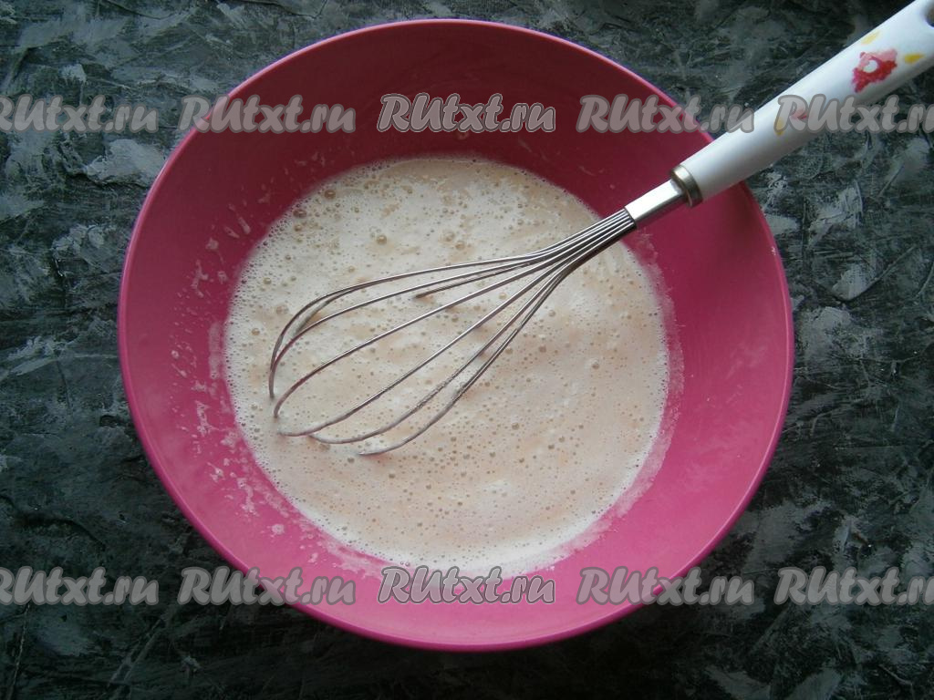 Добавить дрожжевую смесь и хорошо взбить венчиком.