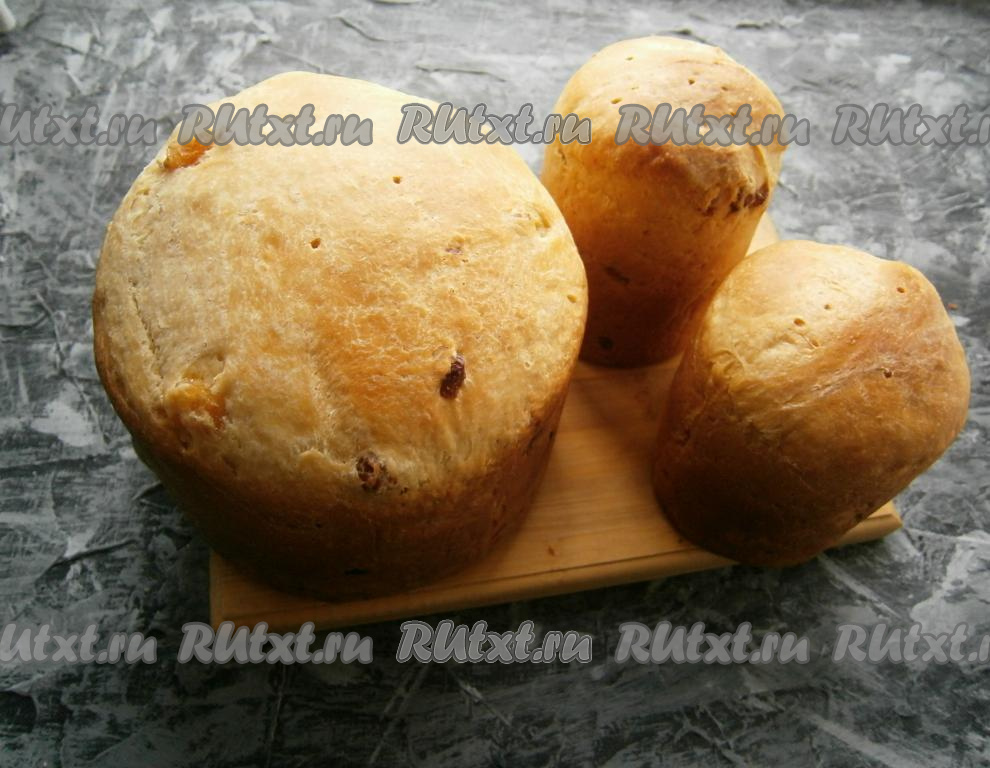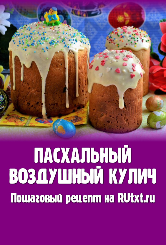 Пасхальный воздушный кулич - необычайно вкусная праздничная выпечка, с которой не нужно долго возиться. Тесто замешивается ложкой, ставится для подхода в теплое место, а затем, также ложкой, раскладывается по формам и выпекается. Такой кулич получается очень нежным и воздушным, сладким и необычайно вкусным. Рекомендую, количество ингредиентов я подбирала на свой вкус, мне очень понравились куличи. Из данного количества продуктов получается 1 средний и 2 небольших кулича.