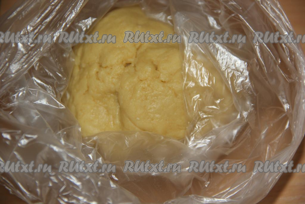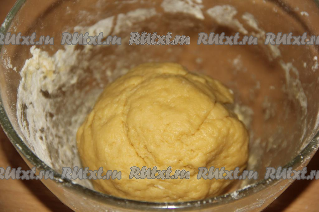 Замесить мягкое и нежное тесто. Тесто сначала будет липнуть, но его нужно хорошо вымесить и оно станет, как пластилин.