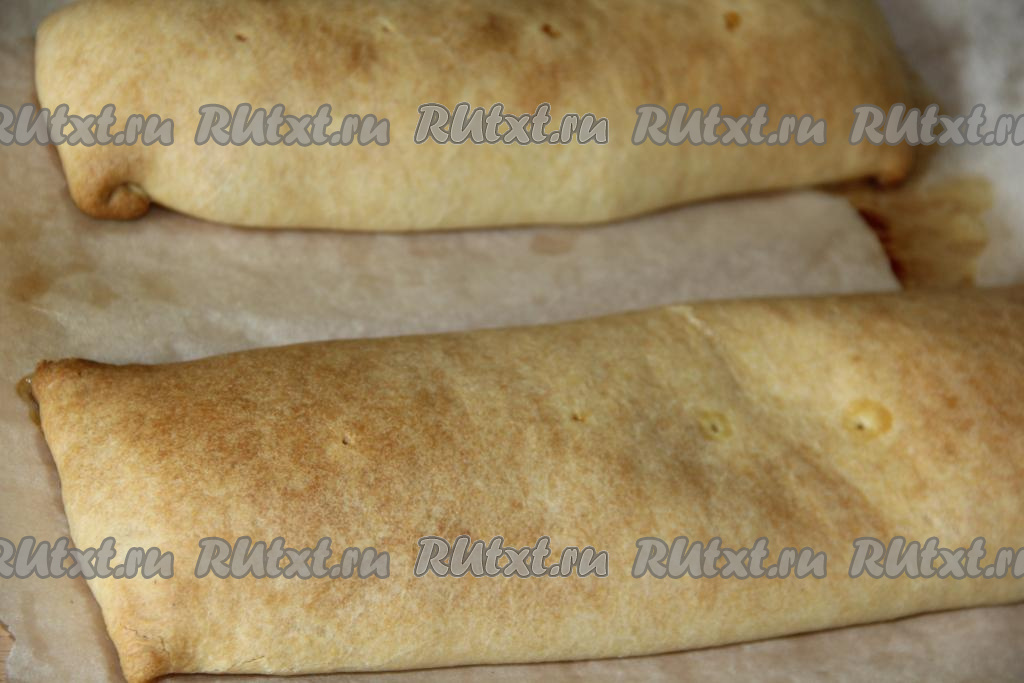 Выложить наши заготовки швом вниз на противень, застеленный пергаментом. На поверхности теста сделать несколько проколов зубочисткой.