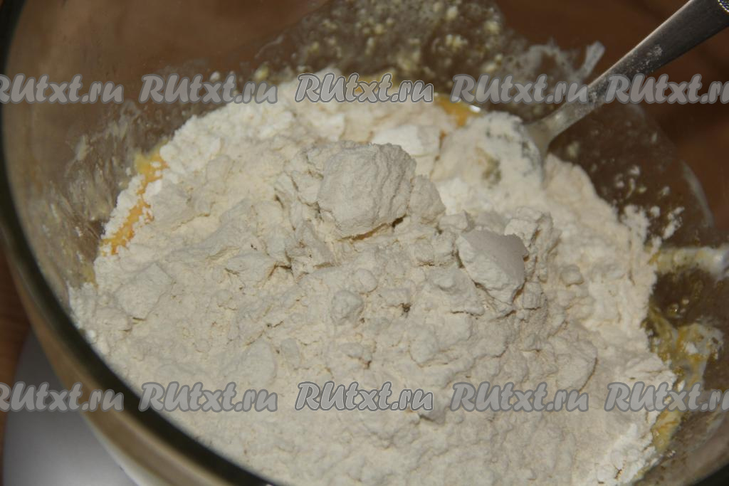 В получившуюся массу всыпать муку и разрыхлитель.