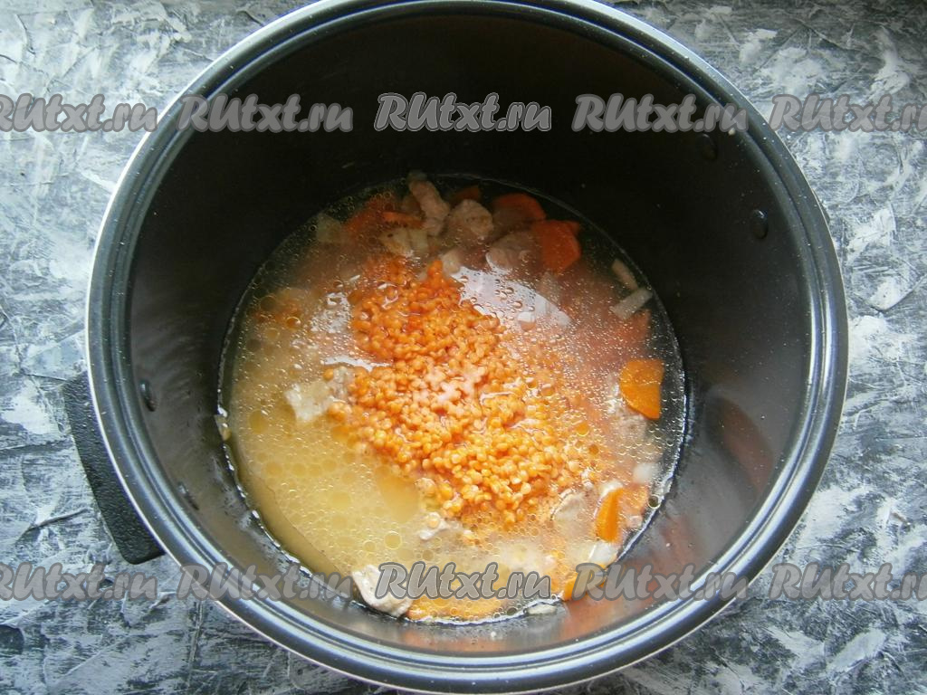Выставить программу "Тушение" на 40-45 минут, крышку мультиварки закрыть. Готовую чечевицу с мясом перемешать.