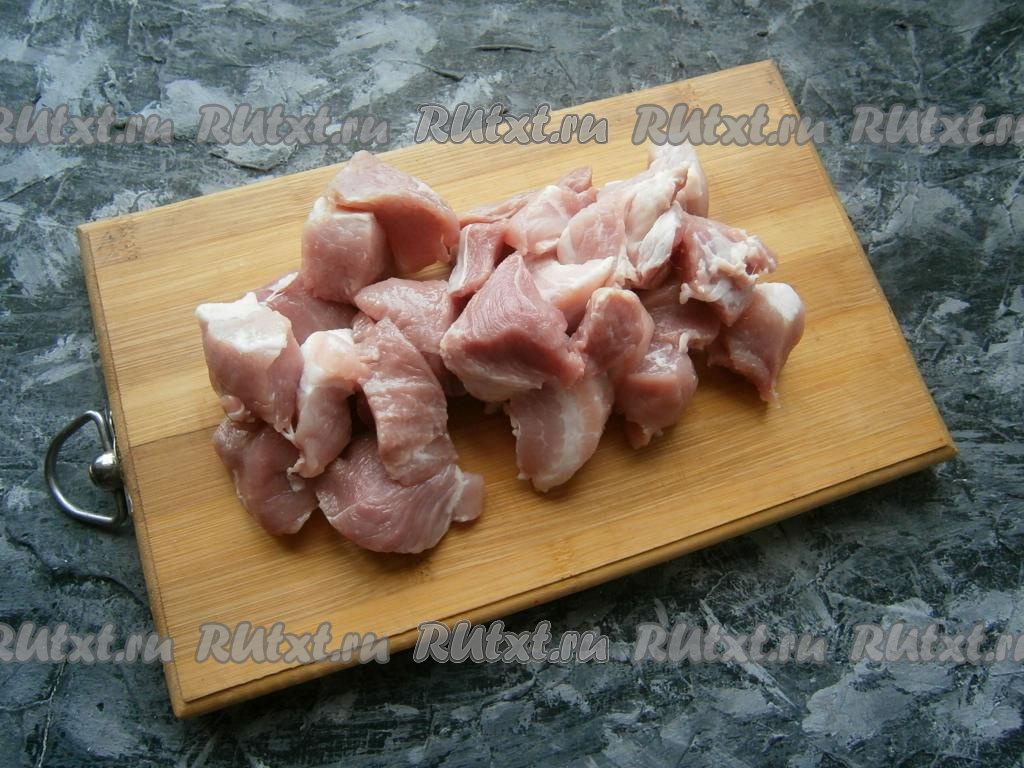 В чашу мультиварки влить растительное масло, выложить мясо, включить режим "Жарка" на 20 минут.
