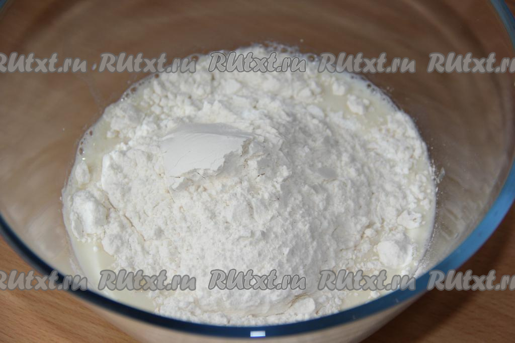 Влить молоко и вбить яйцо в глубокую миску, добавить соль и слегка перемешать. Затем начать небольшими порциями добавлять муку, каждый раз хорошо перемешивая. Как только тесто соберётся в комок, припыливая его мукой, хорошо его вымесить до гладкого состояния.