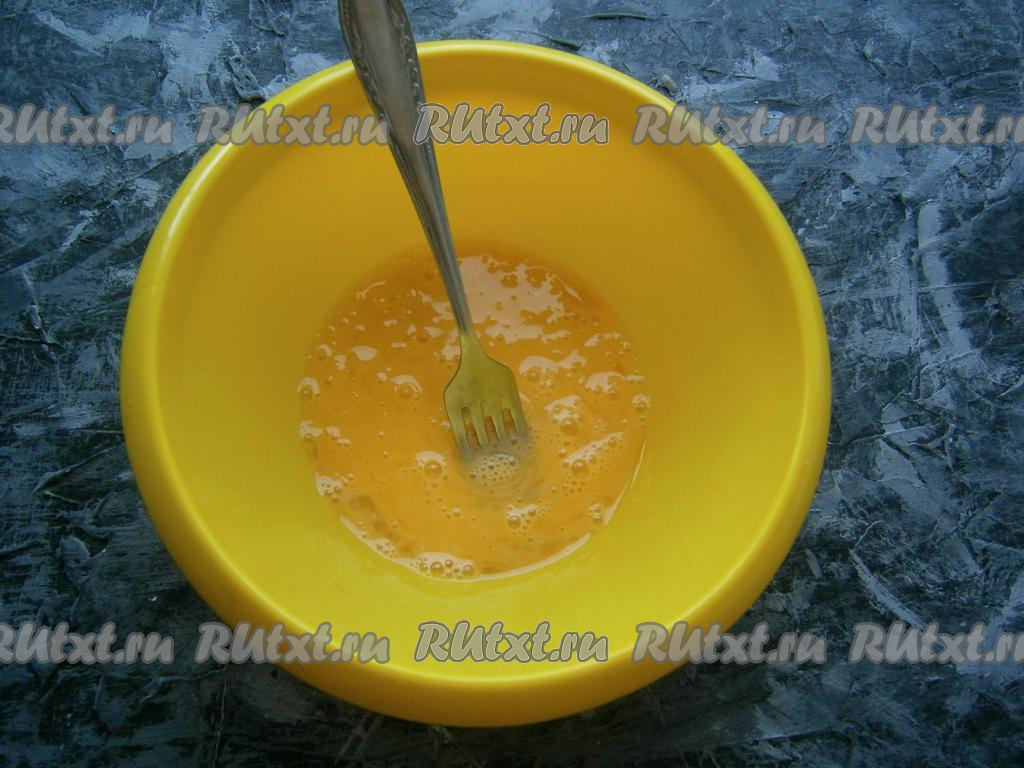 Яйцо разбить в миску, добавить чуть соли, немного взбить вилкой.