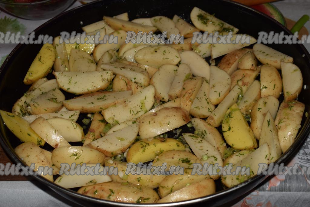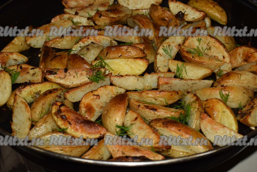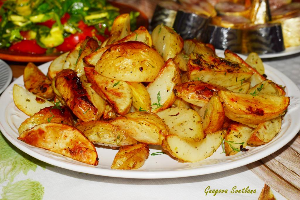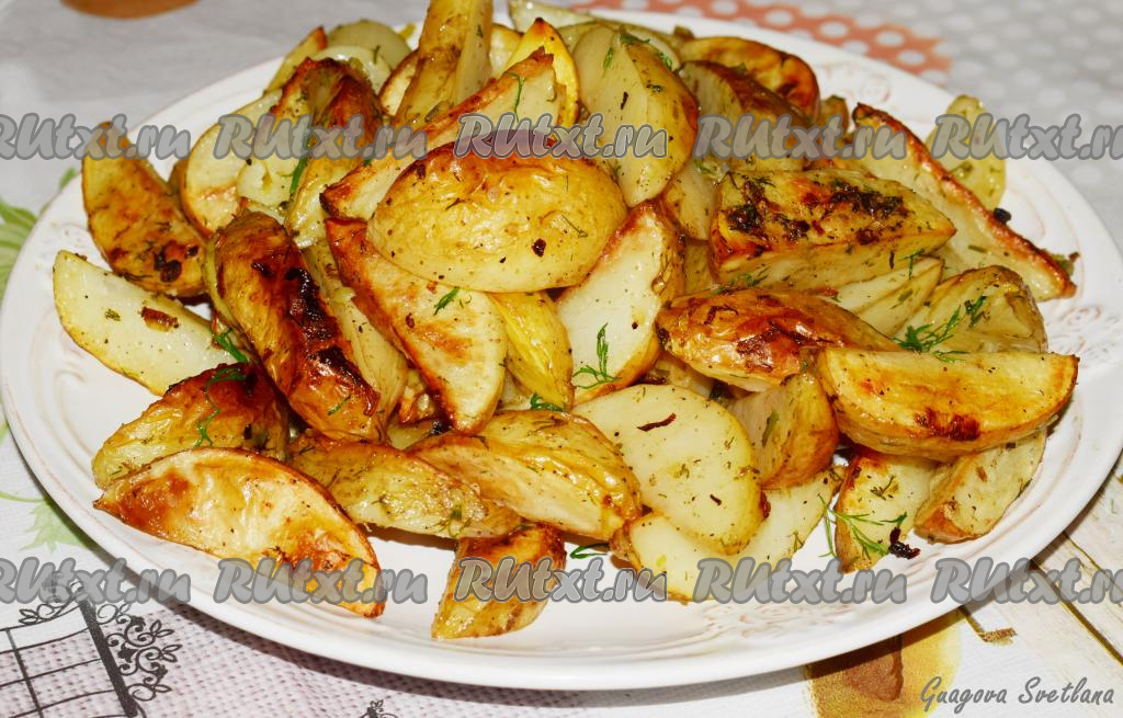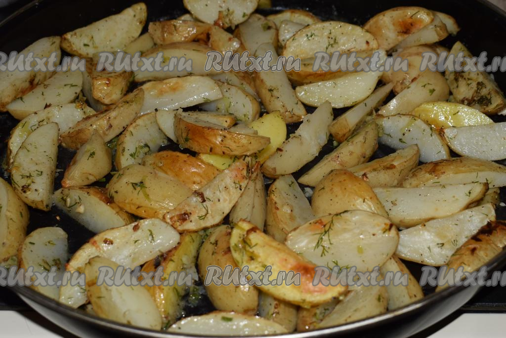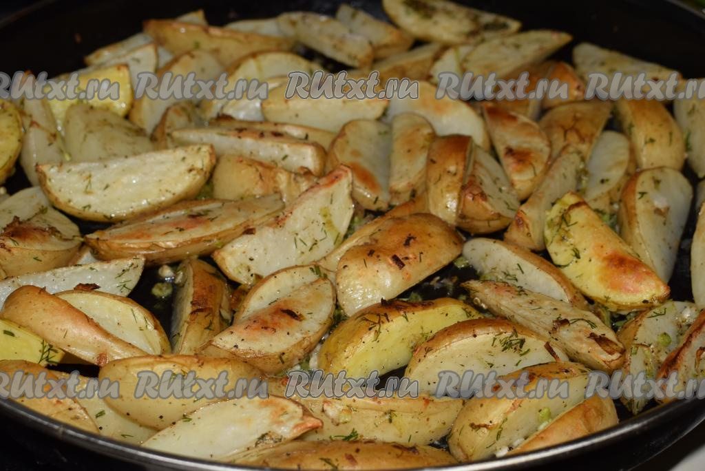 Картофельные дольки в процессе запекания становятся нежнейшими внутри и с хрустящей корочкой снаружи, они прекрасно пахнут чесноком и специями - очень вкусно, попробуйте!