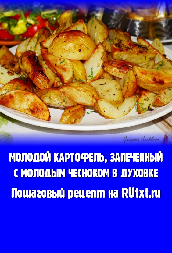 Ароматный, аппетитный, вкусный молодой картофель, запеченный с молодым чесноком в духовке, подаем в горячем виде в качестве гарнира к мясу, рыбе, грибам. Подать такую картошечку можно и в качестве самостоятельного блюда, дополнив овощным салатом.