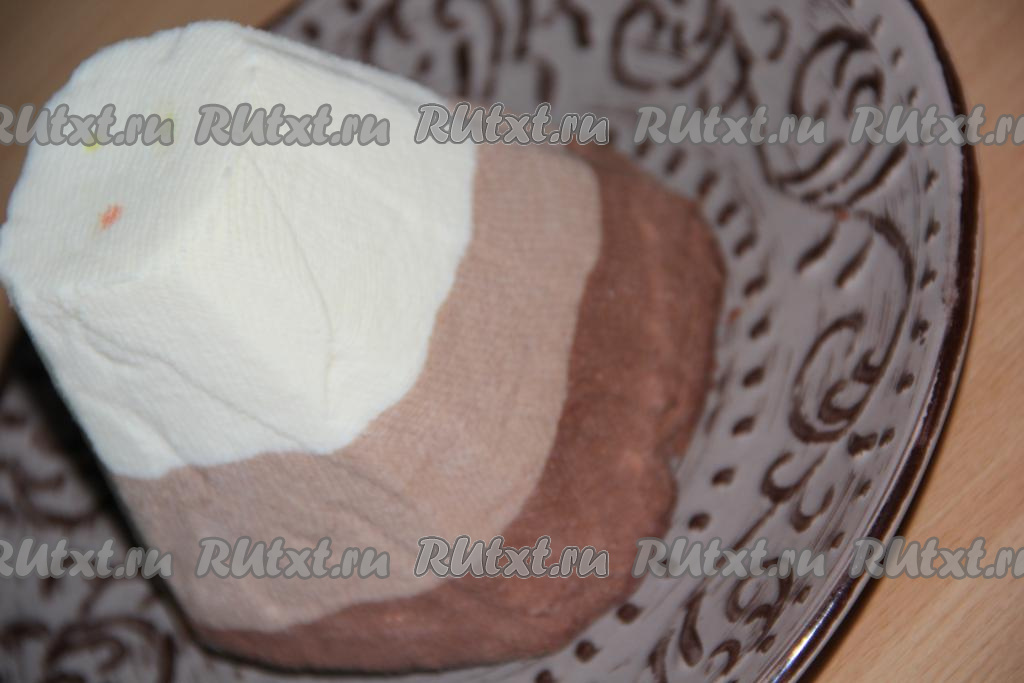 Выложить массу в форму, поверх белого слоя, поставить на 15 минут в холодильник.