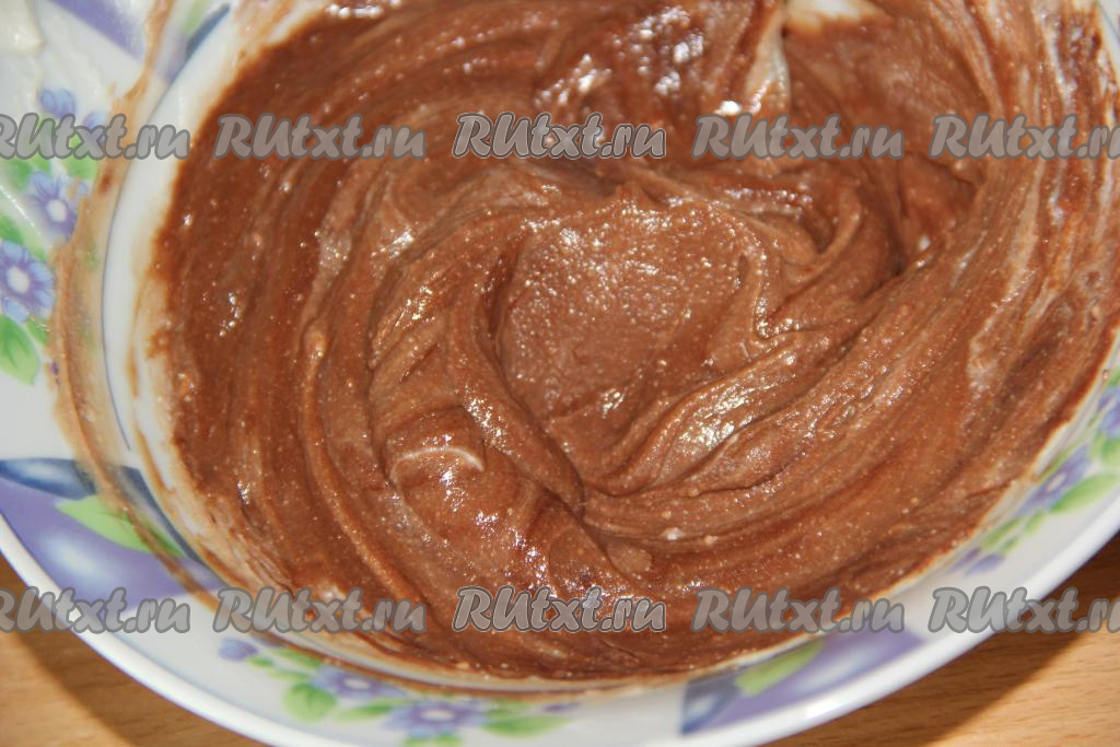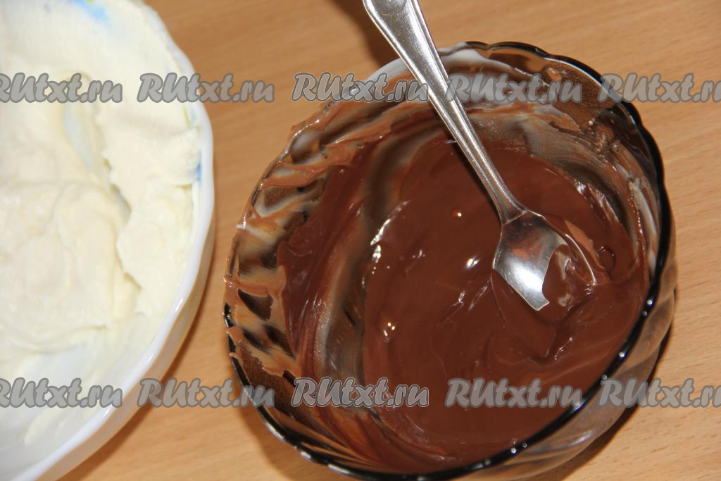 Тёмный шоколад растопить на водяной бане и соединить с оставшейся творожной массой.