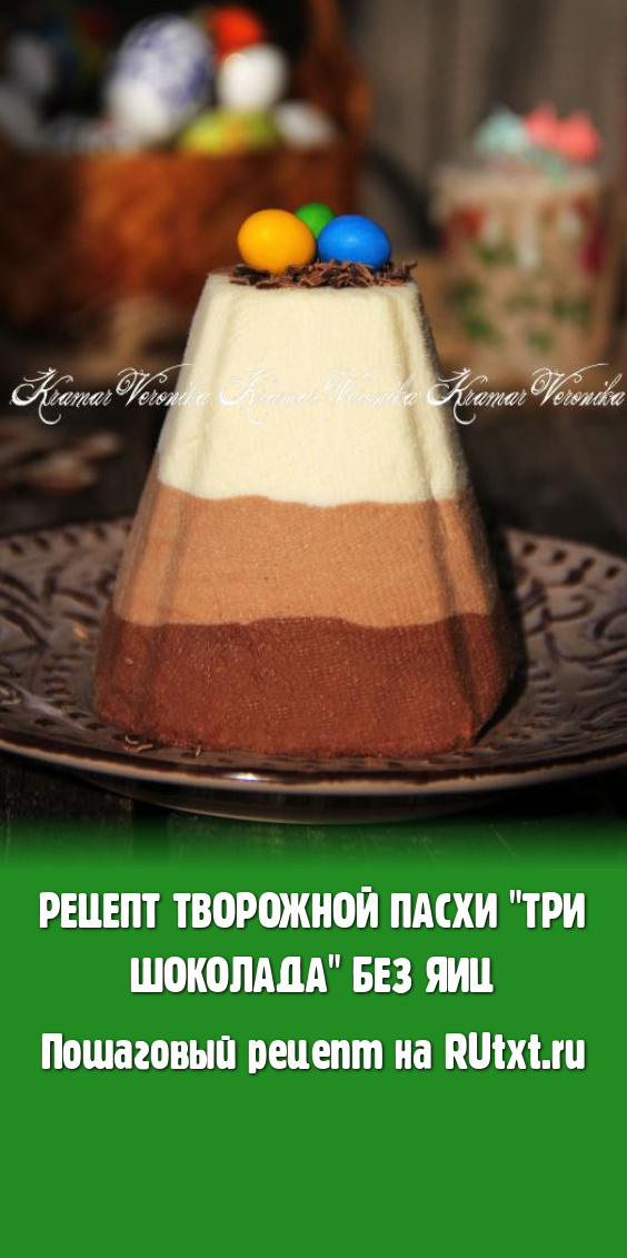В этом году на Пасху готовила наивкуснейший десерт - творожную пасху "Три шоколада" без добавления яиц. Пасха получается не только красивой, но и очень вкусной, с нежнейшей текстурой и, конечно, тремя нотками шоколада. Она прекрасно держит форму и хорошо режется. Наивкуснейший десерт, приготовленный по этому рецепту, станет достойным украшением пасхального стола!