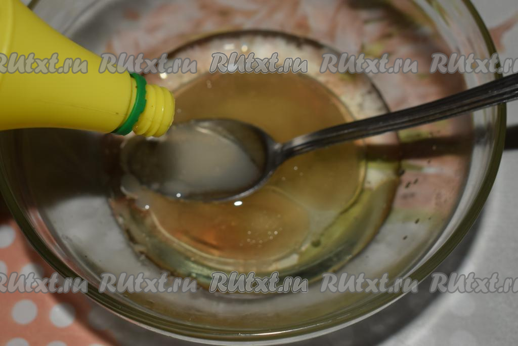 Далее готовим маринад для наших шашлычков, для этого в пиалу добавляем соль, растительное масло, уксус и сок лимона, размешиваем все ингредиенты до однородности.