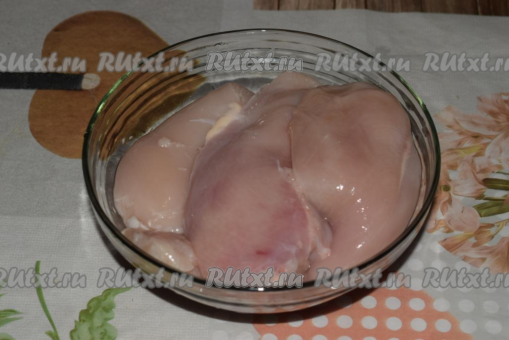 Для приготовления сочного шашлычка из куриного филе сначала промоем мясо холодной водой и слегка обсушим.