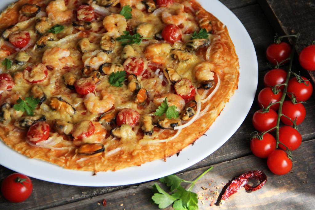 Пицца - одно из самых популярных блюд в мире. Главное - научиться делать тесто дома, а начинку выбирайте сами. Я хочу поделиться рецептом приготовления пиццы с морепродуктами на дрожжевом тесте. Пицца с мидиями и креветками получается очень вкусной и сытной, её можно испечь для пикника или обеденного перекуса. Из данного количества продуктов получается 2 пиццы диаметром 29 см.