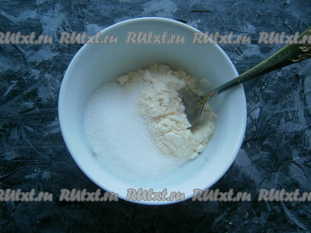Смешать сахар с сухим молоком и ванильным сахаром.