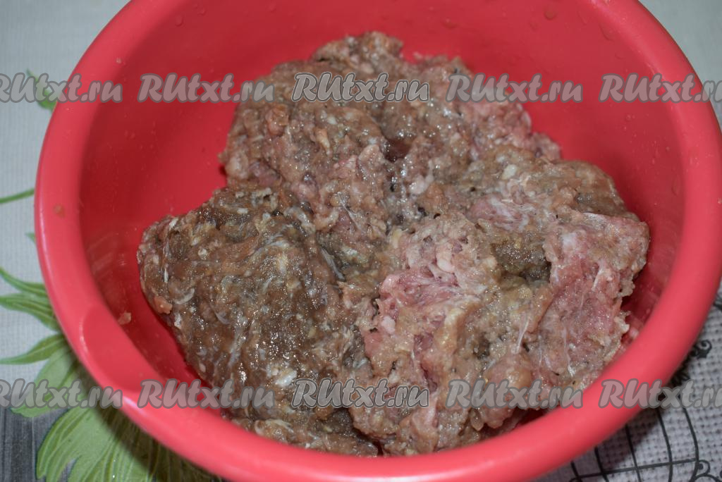 Для приготовления фарша прокрутим на мясорубке мясо с луком. Посолим и поперчим фарш по вкусу и оставим на 15 минут пропитаться специями.