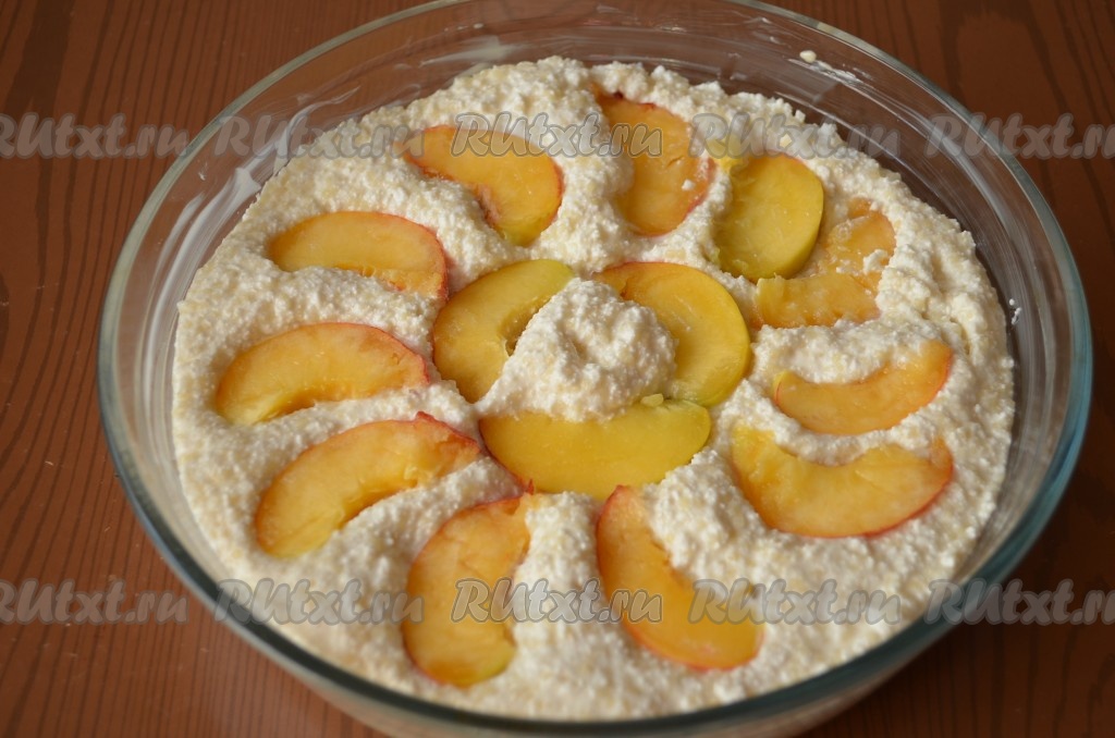 При желании поверх творога можно выложить порезанные ломтиками фрукты. У меня на фото - персик.