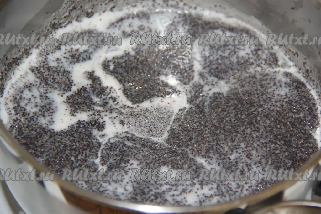 Поставить кастрюлю на средний огонь и варить маковую начинку минут 5, помешивая, затем снять с огня и остудить.