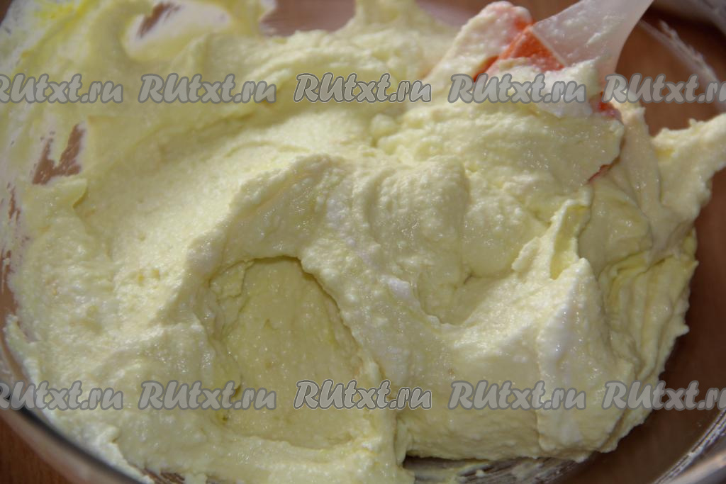 Перемешать массу блендером или лопаткой. Масса получится очень воздушной.