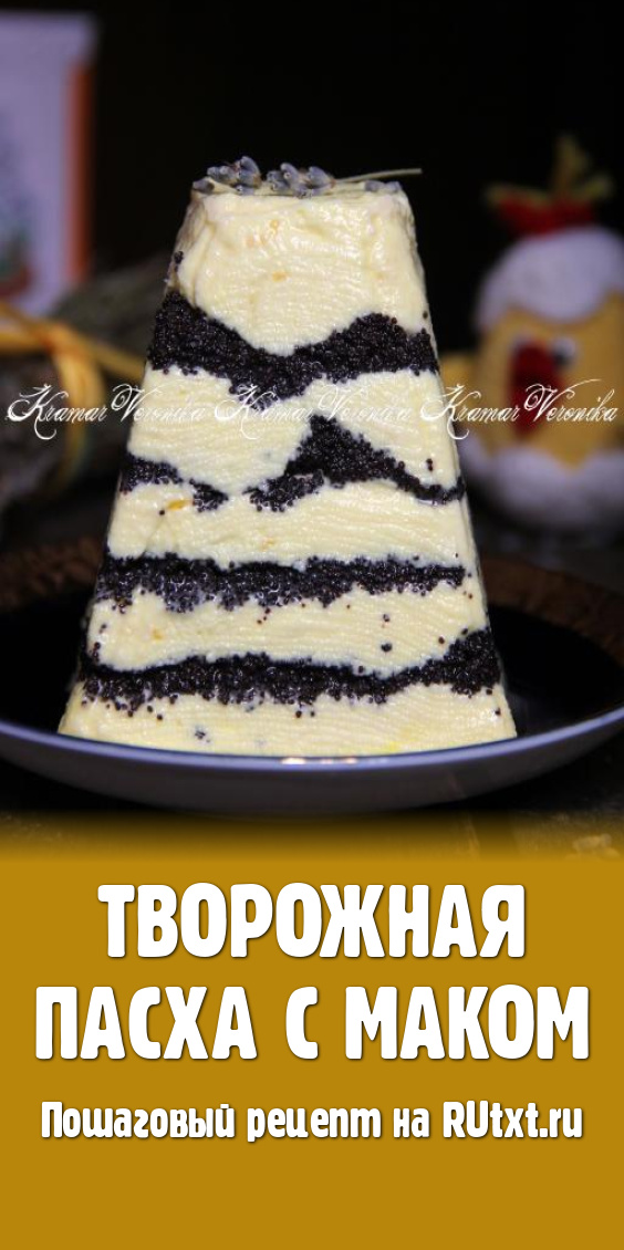 В этом году решила поэкспериментировать и приготовила полосатую творожную пасху с маком. Получился великолепный десерт. Наверное, это одна из самых лучших пасх, которую я готовила. Творожно-маковая пасха получилась не только красивой, но и очень вкусной, нежной, с приятной лимонной ноткой. Уверена, этот десерт не оставит равнодушным ни одного любителя творога и станет украшением пасхального стола!