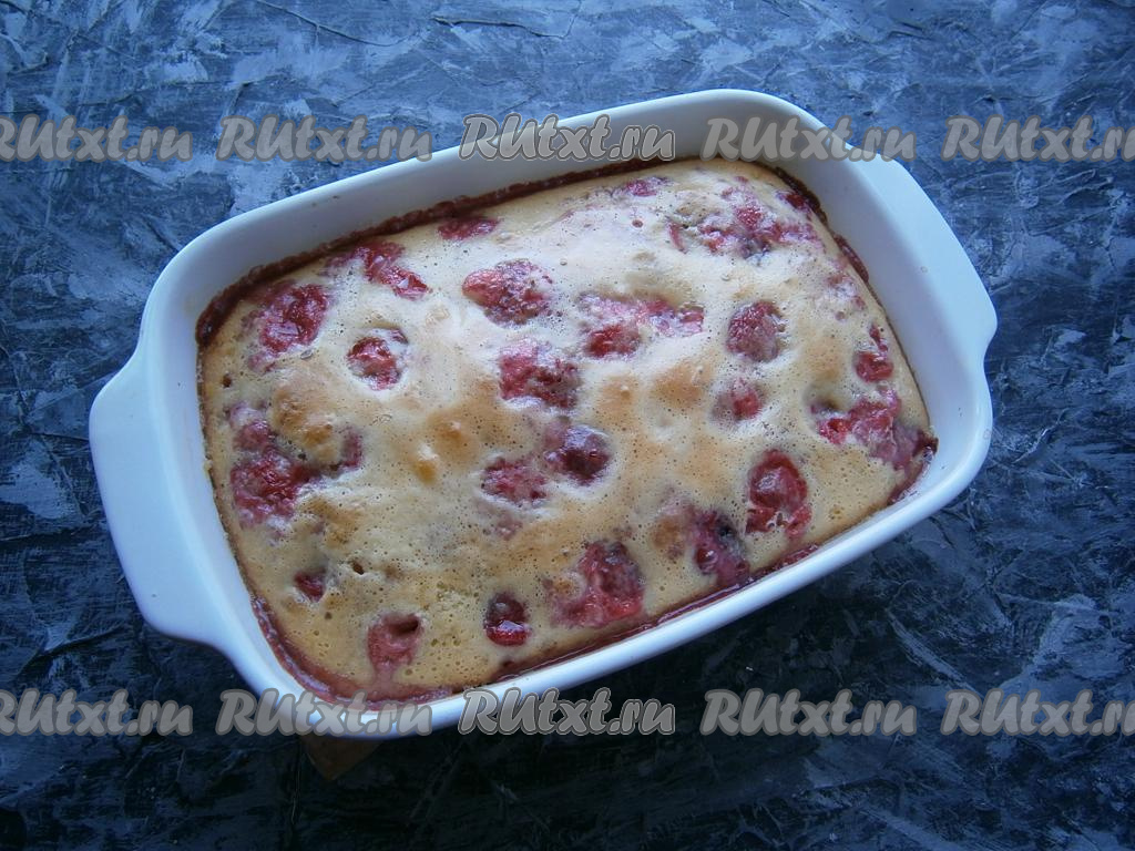 Выпекать клафути с клубникой в разогретой духовке при температуре 180 градусов минут 30.