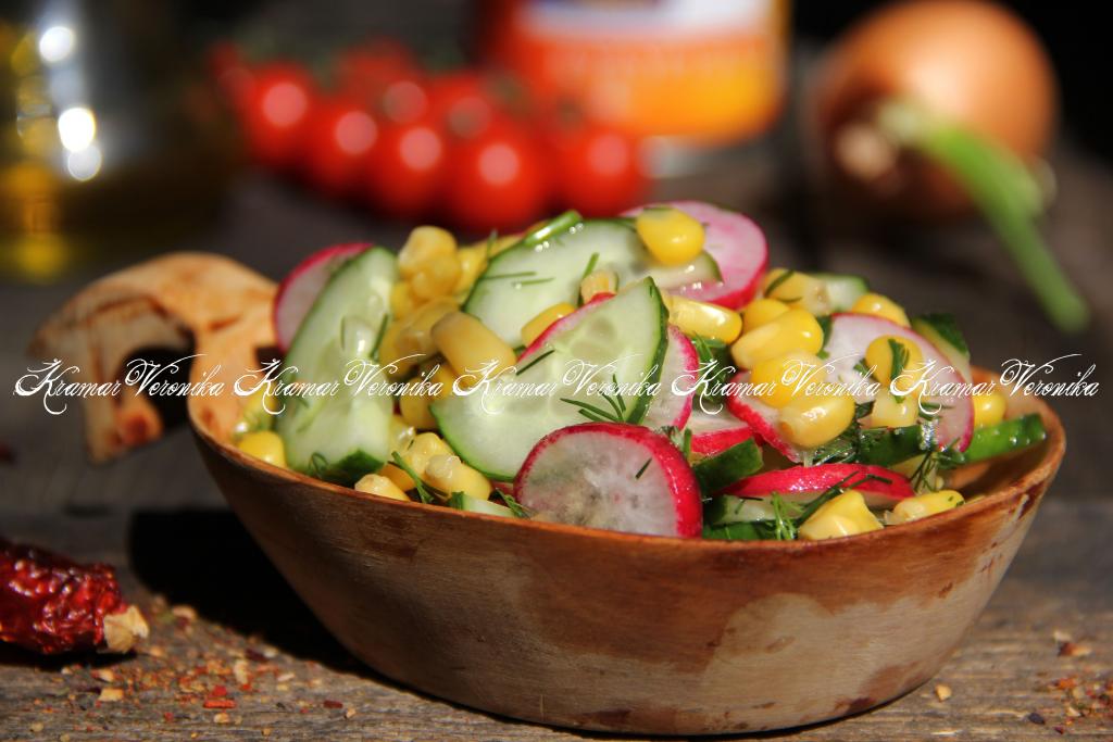 Я часто готовлю самые разнообразные овощные салаты. Порой самые простые салатики получаются особенно вкусными. Мне очень нравится салат с редиской и огурцом, приготовленный с добавлением консервированной кукурузы. Салатик получается лёгким и очень вкусным. Его можно приготовить для перекуса или в качестве дополнения к основному блюду. Прекрасное блюдо для семейного обеда или ужина, попробуйте!