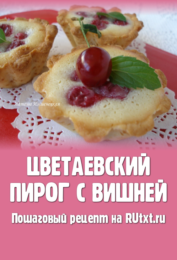 Цветаевский пирог - один из моих любимых пирогов. Я пеку его с разными начинками - яблоками, клубникой, вишней, всегда получается очень вкусно. Хрустящее песочное тесто, нежная сладкая заливка и кислинка ягод идеально сочетаются в этом пироге. Сегодня я приготовила Цветаевский пирог с вишней порционно.