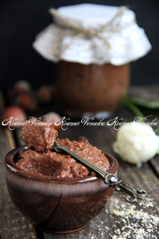 Этот рецепт нашла в Интернете, решила приготовить и не прогадала. Шоколадно-ореховая паста, приготовленная в домашних условиях, получилась очень вкусной. Её можно намазать на белую булочку или печенье, а также подать в качестве дополнения к блинчикам или оладьям. Уверена, эта шоколадная паста с насыщенным ореховым вкусом понравится многим!