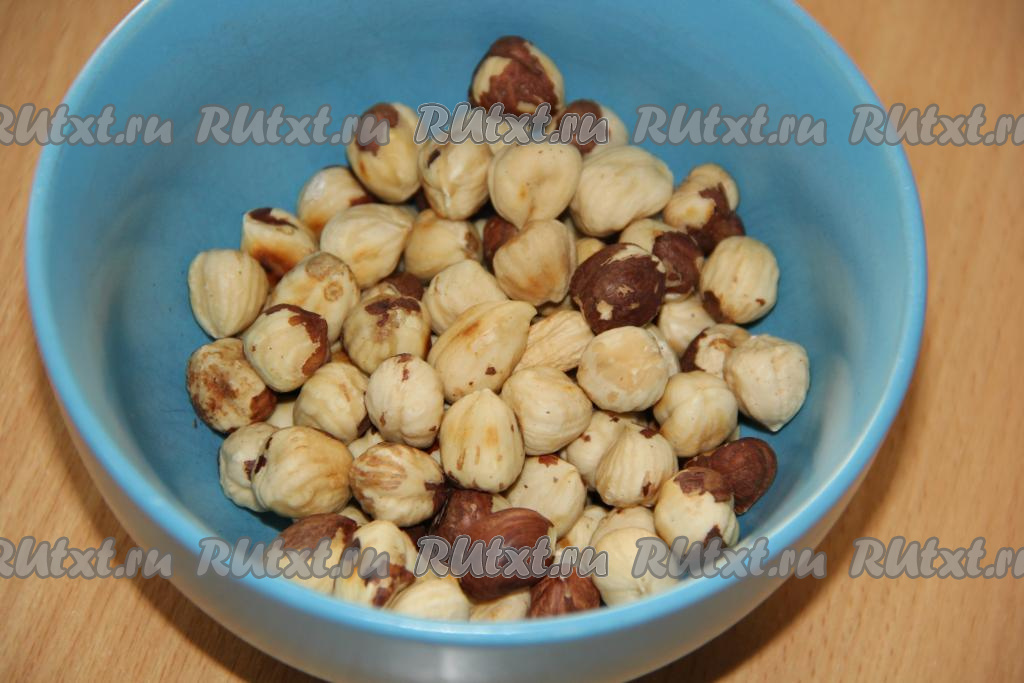 Сливочное масло заранее нужно достать из холодильника, чтобы оно стало мягким. Орехи (я взяла фундук) обжарить со всех сторон на сухой сковороде на небольшом огне, иногда помешивая, затем остудить и очистить от шкурки.