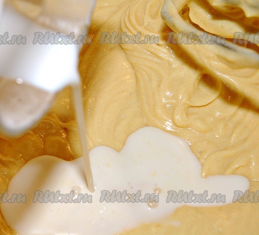 Добавлять мучную смесь, чередуя с молоком.
