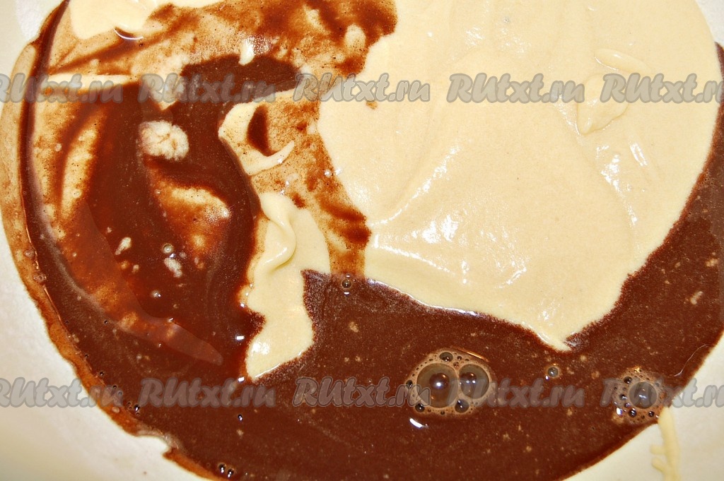 Полученную смесь какао соединить с отложенной 1/3 частью теста.