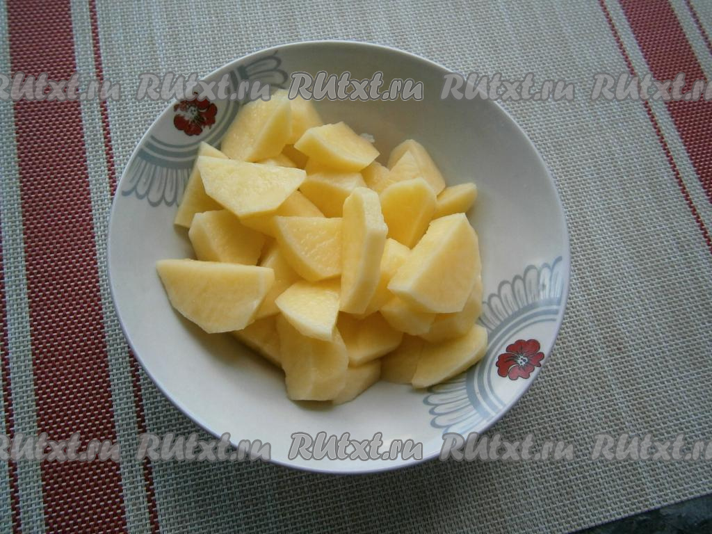 Картофель нарезать также, как и баклажаны (то есть на достаточно крупные кусочки).