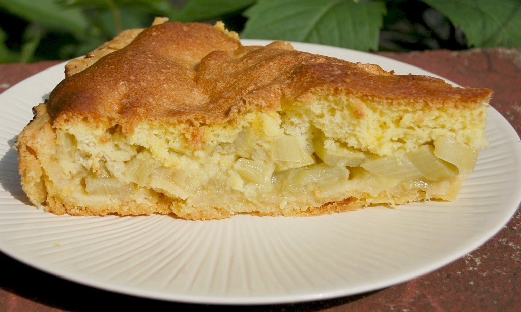 Когда аппетитный пирог с ревенем остынет, разрезать его и можно подавать на стол.
