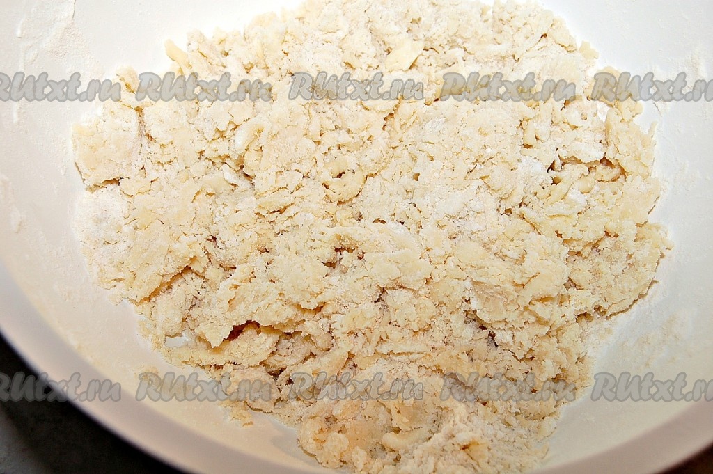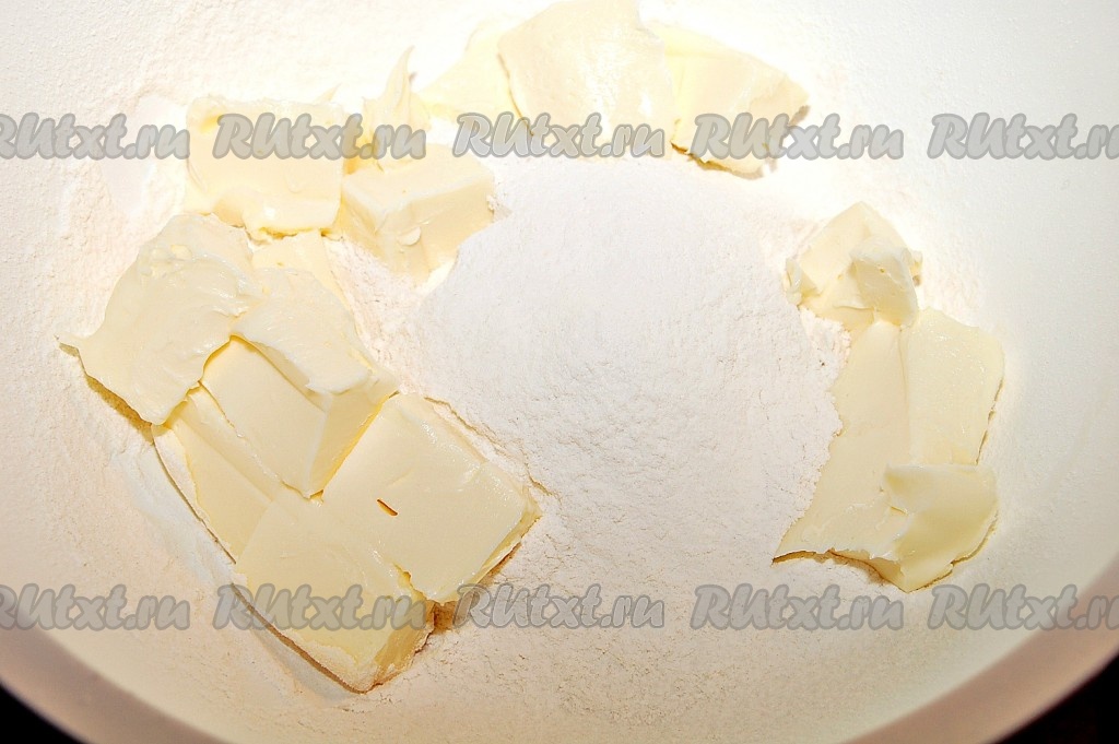 В миске соединить муку со сливочным маслом.