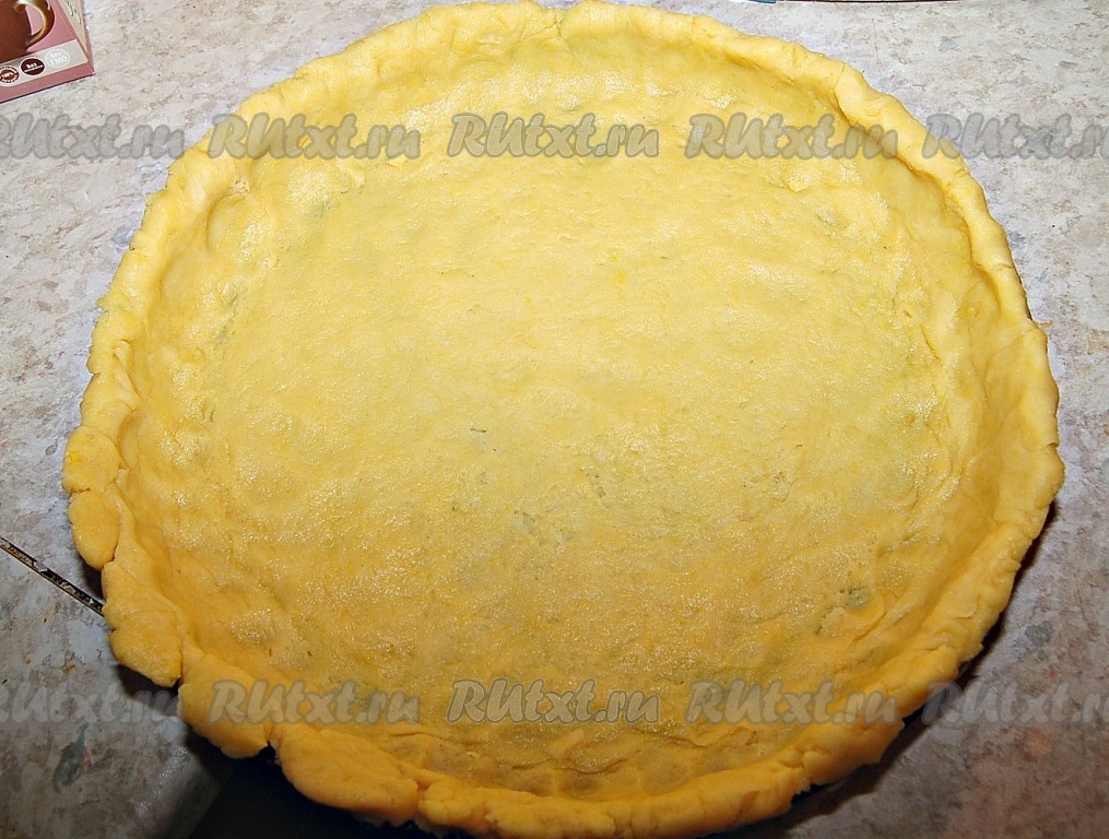 Выложить полученное тесто в форму, равномерно распределив его руками по всей форме. Отправить в заранее нагретую до 180 градусов духовку на 15 минут.