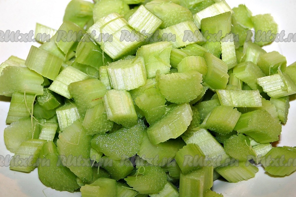 Ревень очистить от внешних волокон. Нарезать небольшими кусочками.