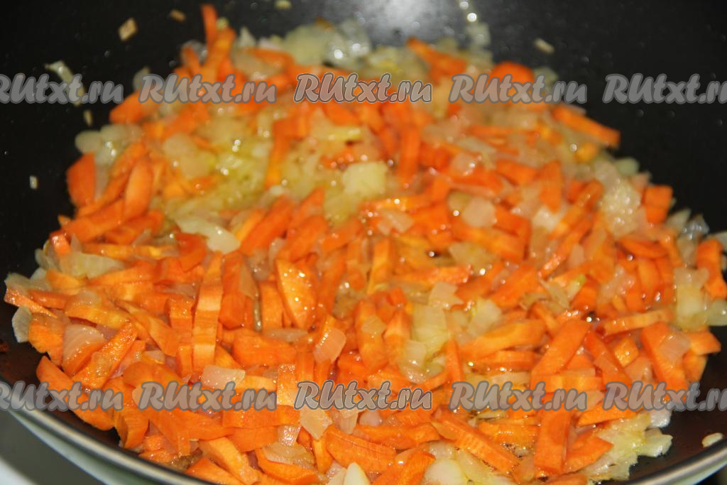 На среднем огне обжарить лук с морковью в течение 3 минут, помешивая.