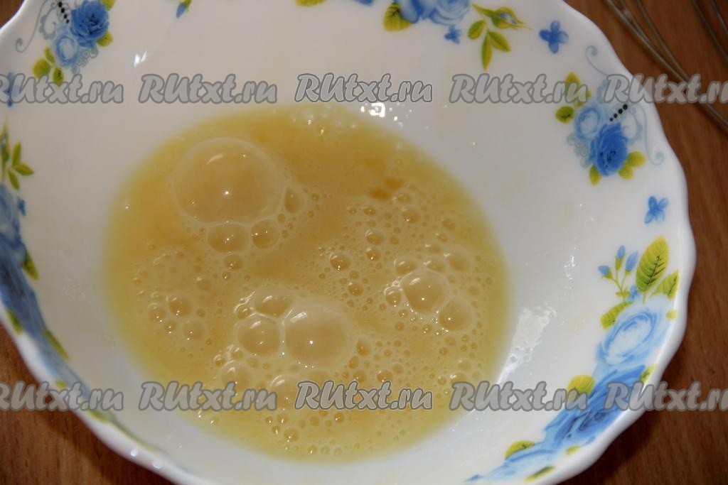 К яйцам всыпать щепотку соли, можно, по желанию, добавить чёрный молотый перец, взбить венчиком до однородности.