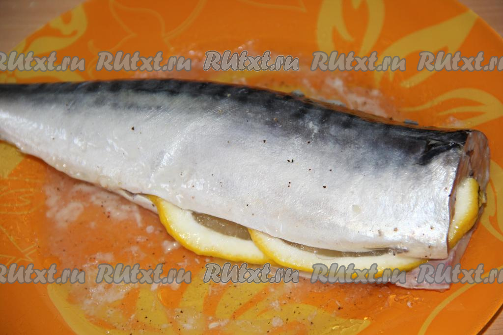 Запекать скумбрию с лимоном в разогретой духовке, примерно, 25 минут при температуре 200 градусов. Рыбка покроется красивой золотистой корочкой.
