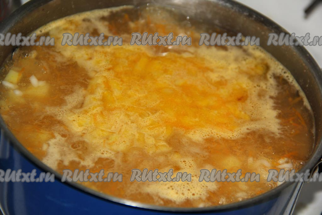 Когда рис с картошкой проварятся минут 15, добавить в рыбный суп из минтая обжаренные овощи и варить минут 5-7.