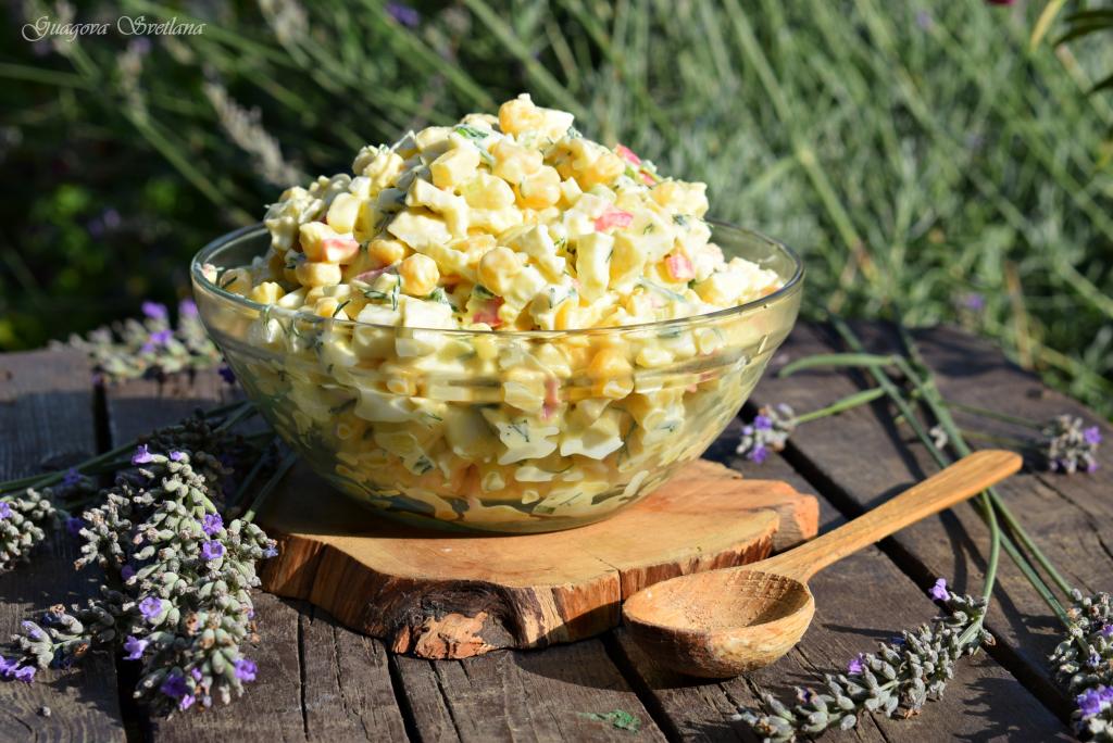 Салат с крабовыми палочками уже давно стал любим во многих семьях, с чем только не готовят это блюдо и каждый вариант по-своему вкусен и интересен. Я хочу поделиться рецептом, который полюбился нашей семье. Крабовый салат с картошкой и кукурузой готовится без добавления риса, получается аппетитным, вкусным и достаточно сытным. У нас этот салатик за ужином или обедом съедается одним из первых. Если вы ещё не пробовали салат с крабовыми палочками, кукурузой и картошкой, то рекомендую!