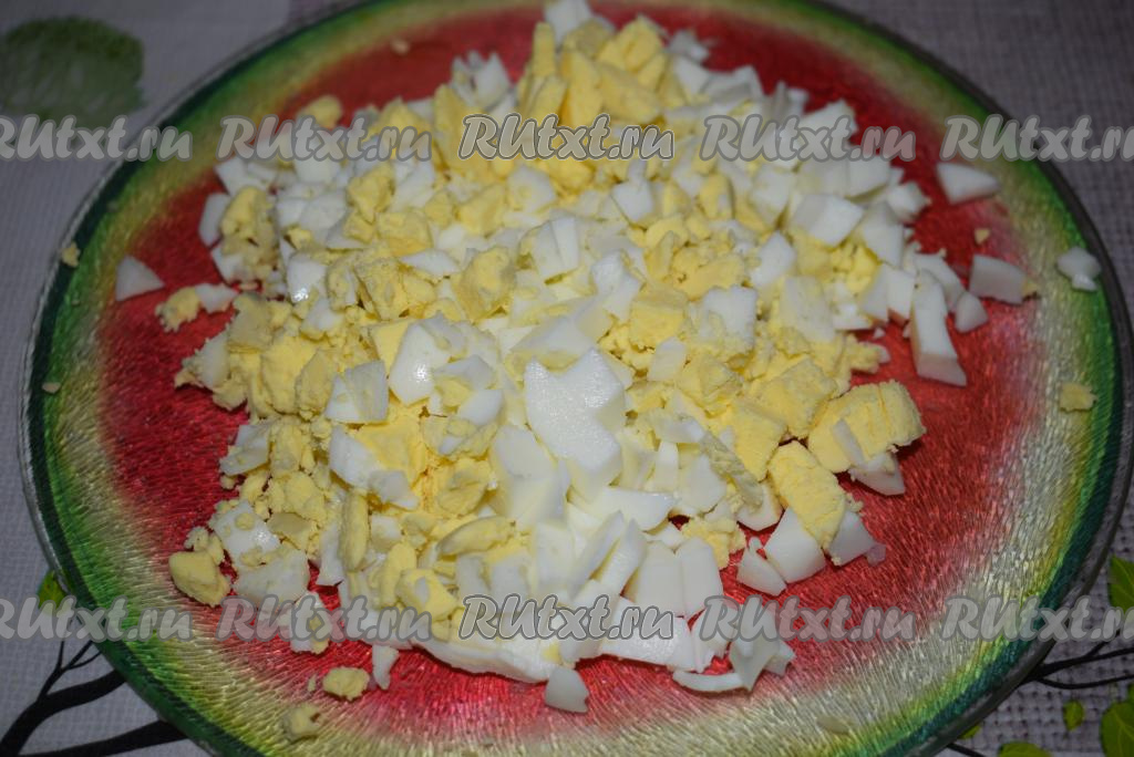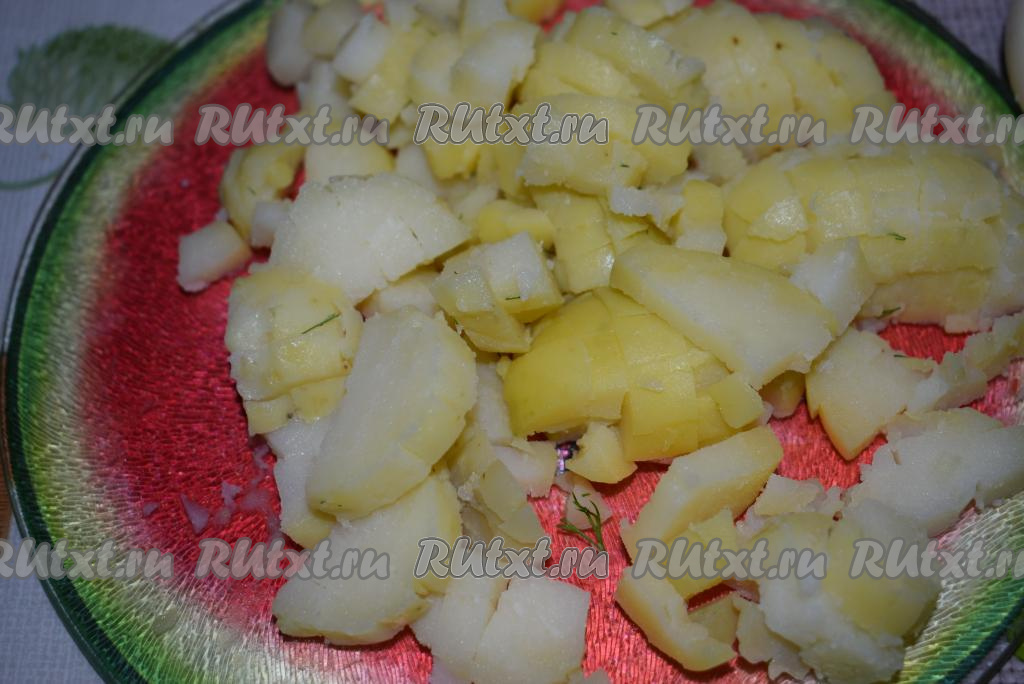 Нарезаем картофель и яйца кубиками.