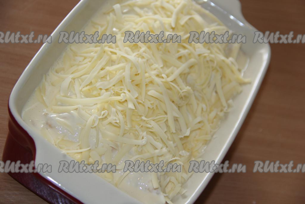Верх запеканки присыпать тёртым сыром.
