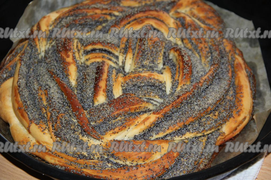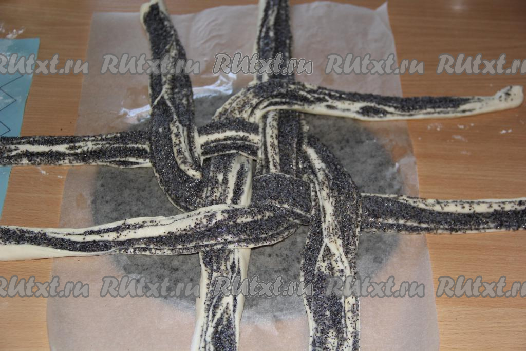 Переложить плетёнку с маком на противень и оставить для расстойки на 30-40 минут. Поставить противень с маковой плетёнкой в разогретую духовку и выпекать при температуре 200 градусов, примерно, 35-40 минут.